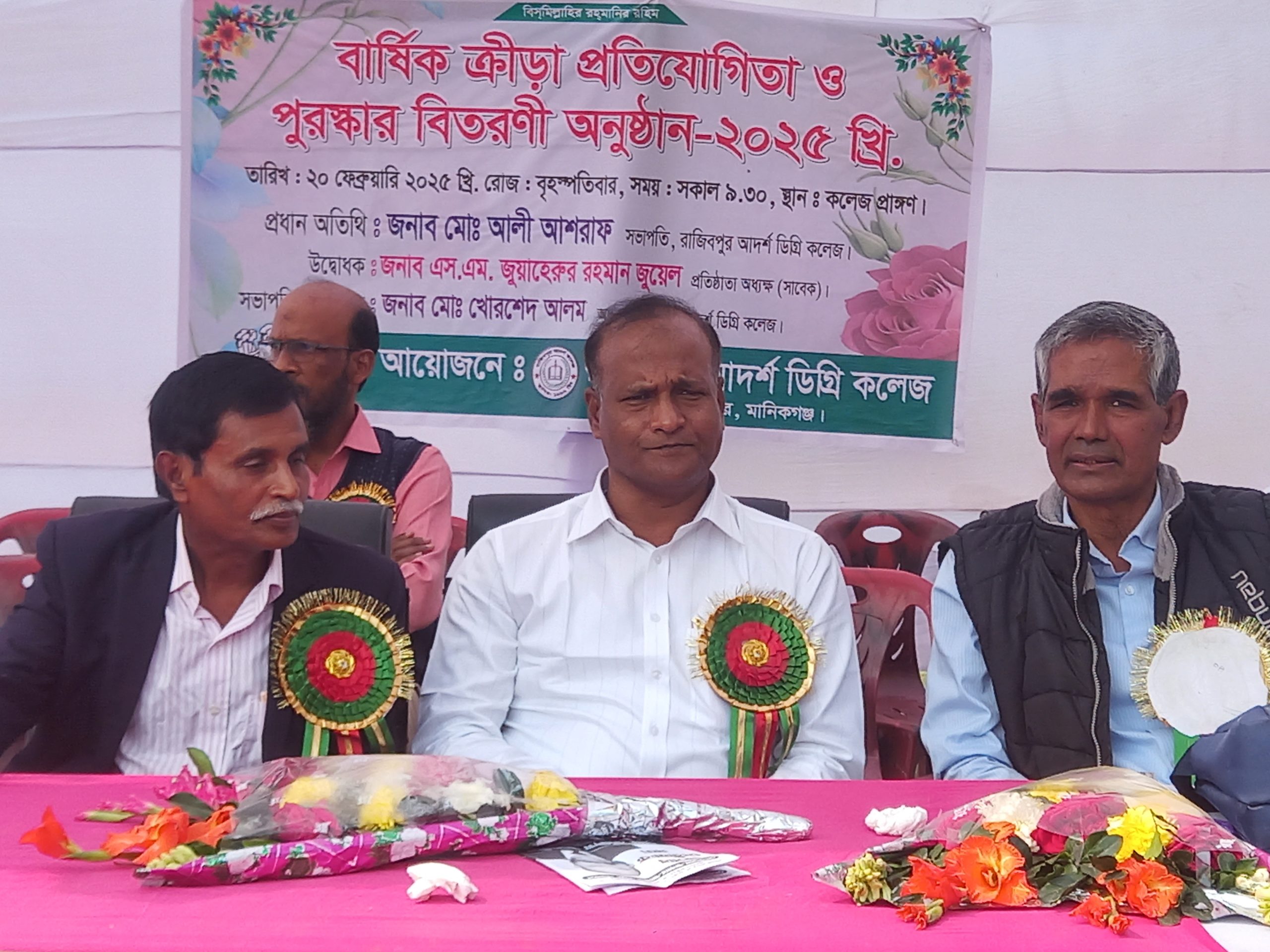মানিকগঞ্জের রাজীবপুর আদর্শ ডিগ্রি কলেজে বার্ষিক ক্রীড়া প্রতিযোগিতা ও পুরস্কার বিতরণী অনুষ্ঠান আনন্দঘন পরিবেশে অনুষ্ঠিত হয়েছে। বুধবার (২০ ফেব্রুয়ারি) সকাল