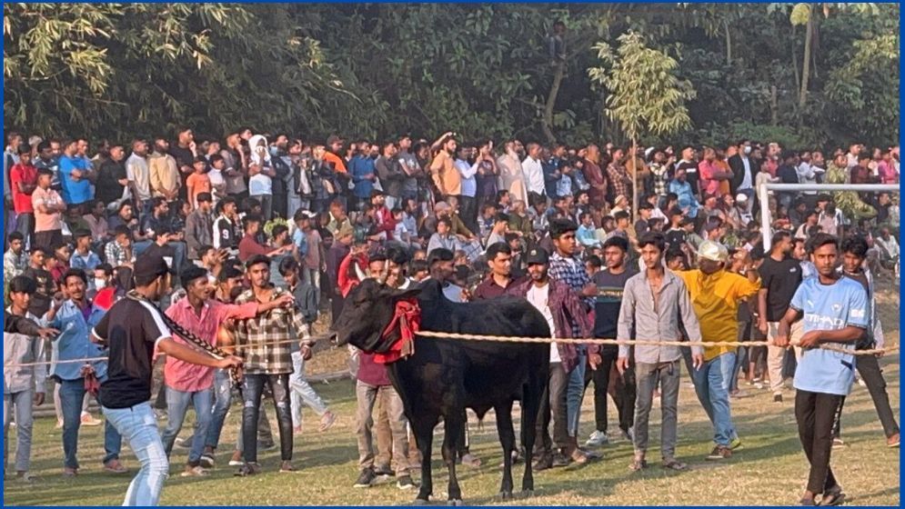 গরু প্রতিযোগিতা দেখতে হাজারো মানুষের ভিড়